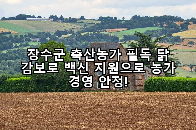축산업은 우리 식탁을 책임지는 중요한 산업이지만, 질병과의 싸움은 늘 농가에게 큰 부담입니다. 특히 닭 감보로병과 같은 전염성 질병은 면역력을 약화시키고 생산성 저하를 초래하여 농가 경영에 치명적인 영향을 미칠 수 있습니다. 이러한 어려움 속에서 장수군이 축산농가의 든든한 버팀목이 되어주는 희소식이 있어 자세히 전해드립니다.